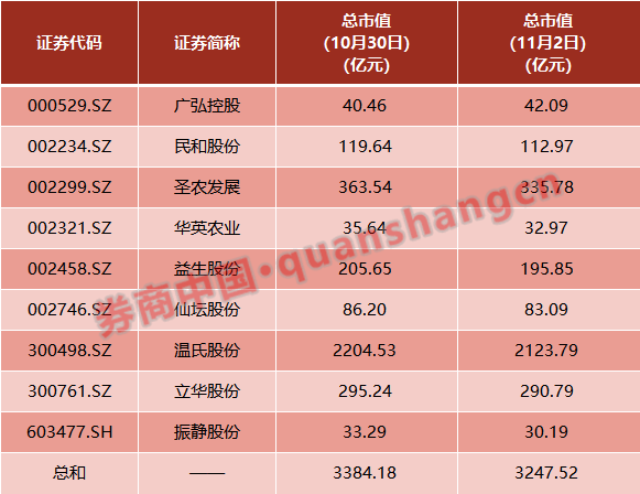由于猪肉和鸡肉的高价,两个一直在上涨的主要行业的库存也下跌了三天。根据WIND数据,养猪业的股票市值蒸发了超过2600亿元。