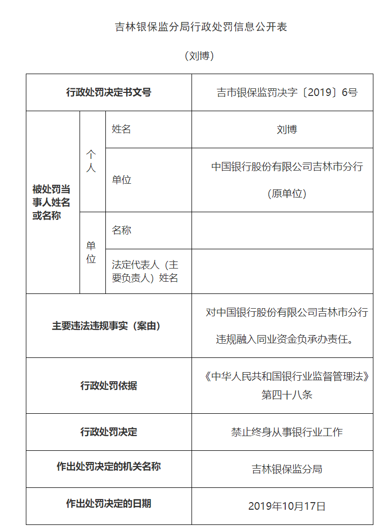 吉林省银行保险监督管理局和吉林省银监局分别依法对上述机构处以5150万元罚款,并责令中国银行吉林省分行有关负责人负责。总裁和副总裁被禁止在一段时间内和终身从事银行业务。对工作,警告和罚款等行政处罚共计25万元。
